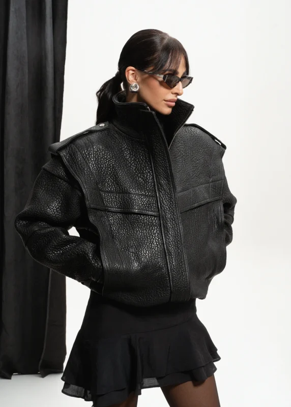 Boyfriend Textured Kožna Jakna/Prsluk – Crna